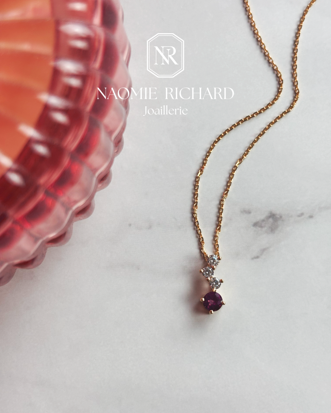 Pendentif Cascade - Or Jaune recyclé 18kt - Grenat Rhodolite et Diamants