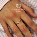 The Toi & Moi ring reinterprets this timeless classic of fine jewelry collections, symbolizing the harmony between two stones. In this contemporary version, a colored gemstone and a diamond of differing sizes face each other, separated by a space that adds a modern twist to this iconic piece. This subtle gap highlights the individuality of each stone while enhancing their perfect complementarity, creating a result that is both bold and refined.