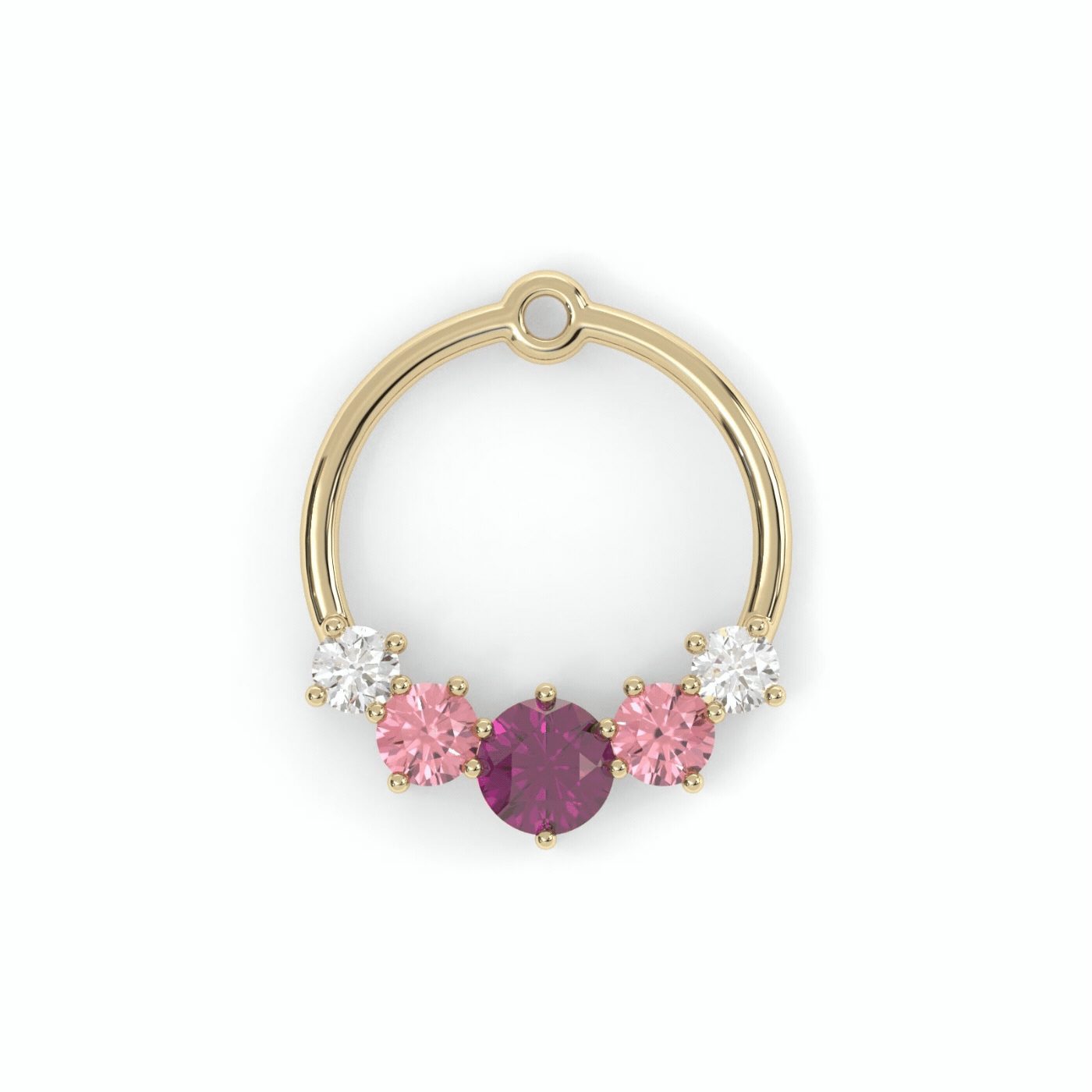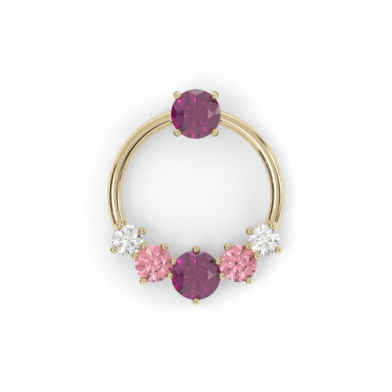 The shades of blue from aquamarine and sapphires, the green of peridots and tsavorite garnets, as well as the pink of tourmalines and rhodolite garnets blend with the sparkles of diamonds, like a vibrant rainbow captured in each petal.